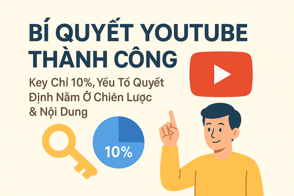 Nhiều bạn mới làm YouTube thường nghĩ từ khóa (key) quyết định hầu hết thành công của kênh. Nhưng thực tế, key chỉ chiếm khoảng 10%.